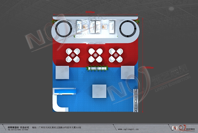 巧妙的運(yùn)用藍(lán)色、白色作搭配,著重突出品牌和產(chǎn)品的展示,使整個(gè)展位時(shí)尚新穎。