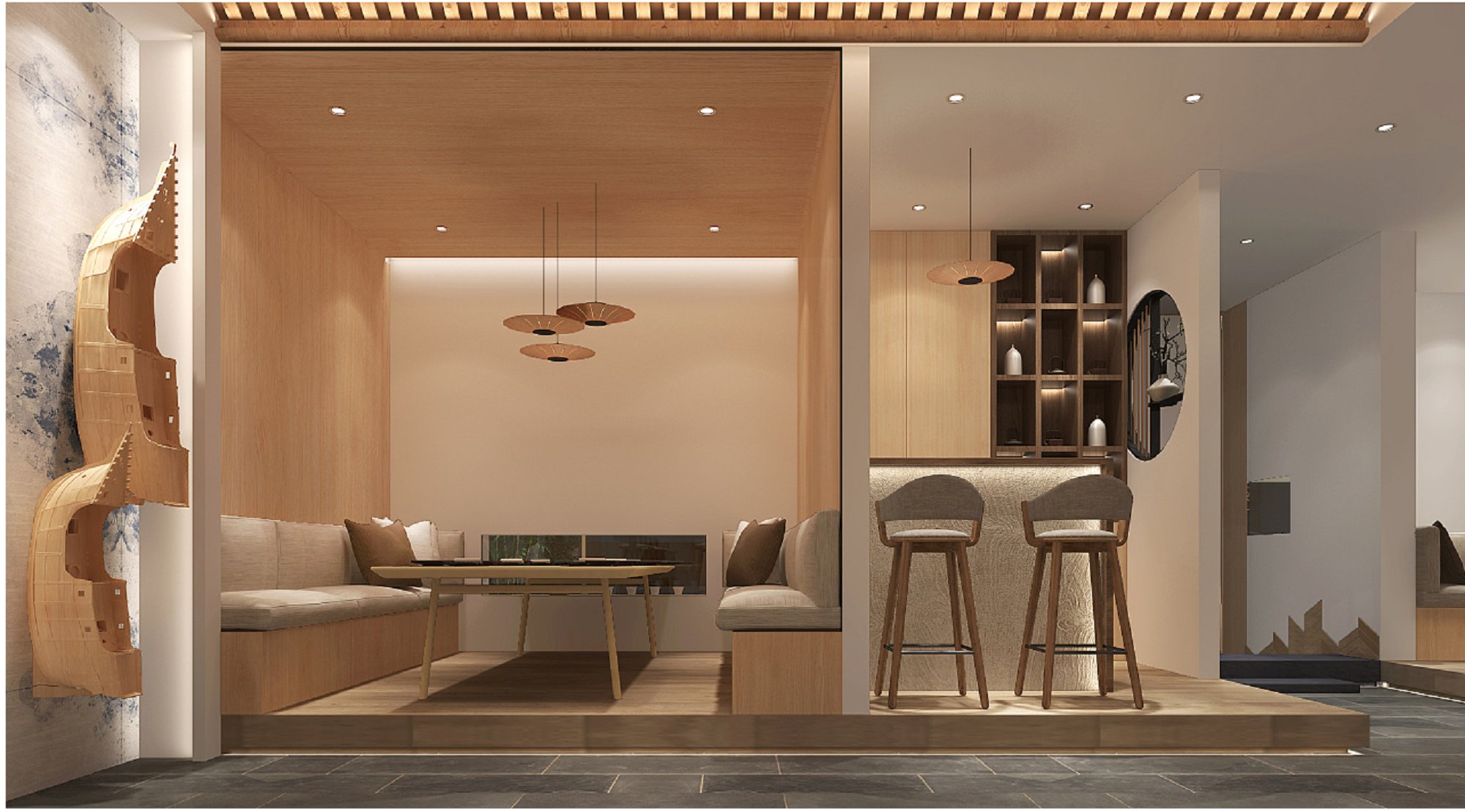 契合品牌形象和產品特性,采用開放式結構進行合理的分區(qū),再搭配燈具燈光的效果,襯托出大氣的氛圍,突出一種簡約、時尚的品味。