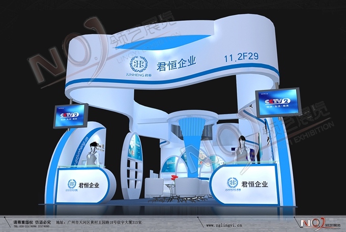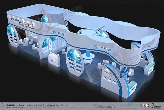 契合君恒的品牌形象和產(chǎn)品特性,采用弧形、矩形結(jié)構(gòu),再搭配燈具燈光的效果,襯托出展位時(shí)尚、簡(jiǎn)約的氛圍,突出一種柔順、活力的時(shí)尚品味。