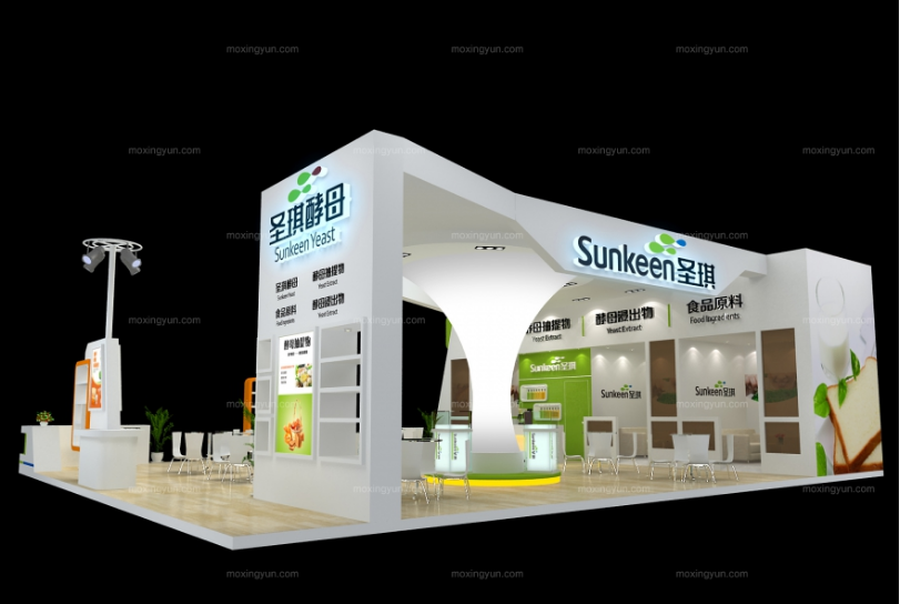 巧妙的運(yùn)用白色作主色調(diào)搭配黃色,著重突出品牌和產(chǎn)品的展示,使整個展位明亮又時尚。