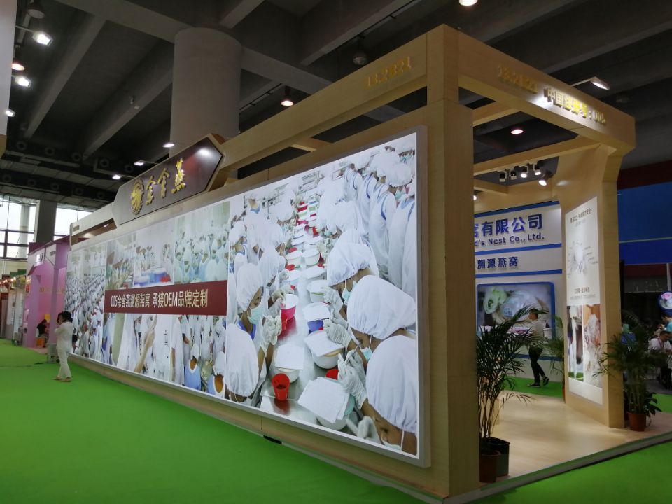 契合余舍燕的品牌形象和產品特性,采用開放結構,再搭配燈具燈光的效果,襯托出展位大氣、豪華的氛圍,突出一種簡約、時尚的品味。
