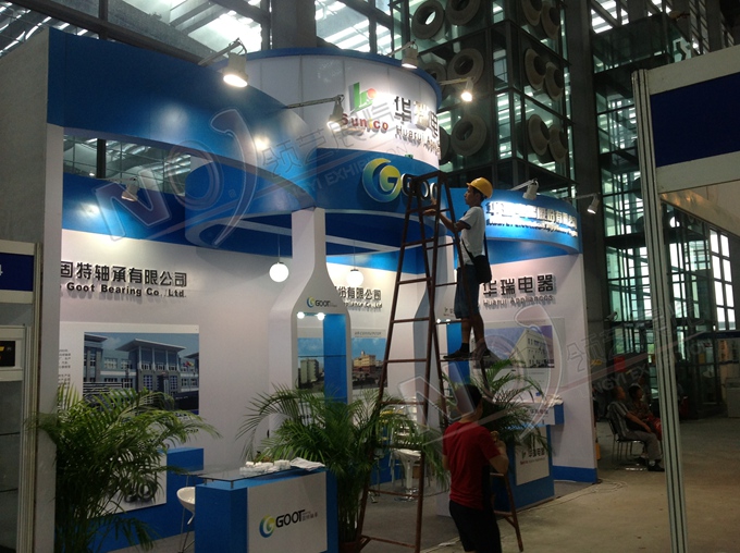 契合華瑞電器的品牌形象和產品特性,采用弧形、框型結構,再搭配燈具燈光的效果,襯托出展位簡潔、明亮的氛圍,突出一種創(chuàng)新、簡約的時尚品味。