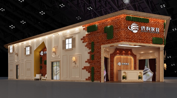 契合僑利的品牌形象和產(chǎn)品特性,運用紅磚效果再采用線條、框型結(jié)構(gòu),再搭配燈具燈光的效果,襯托出展位簡約、融合的氛圍,突出一種高端、舒適的時尚品味。