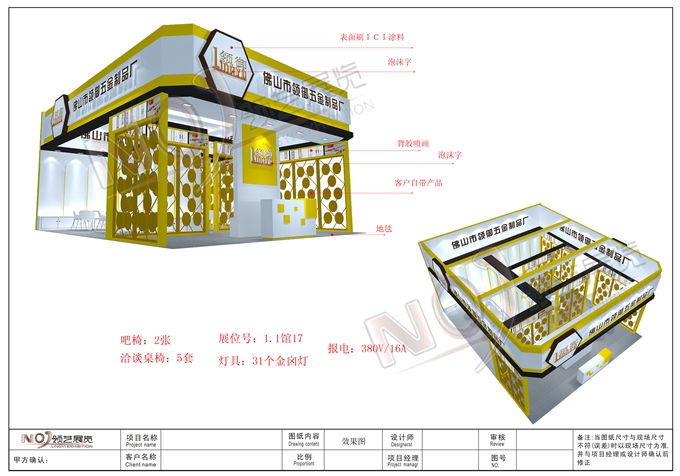 契合領(lǐng)御五金的品牌形象和產(chǎn)品特性,采用矩形結(jié)構(gòu),再搭配燈具燈光的效果,襯托出展位自由、創(chuàng)新的氛圍,突出一種現(xiàn)代、時尚的時尚品味。