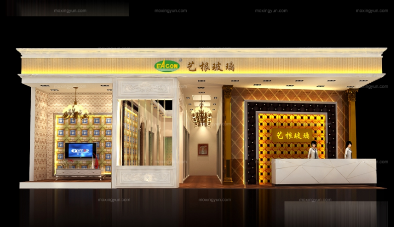 契合藝根玻璃的品牌形象和產(chǎn)品特性,采用線條、結(jié)構(gòu),再搭配燈具燈光的效果,襯托出展位簡(jiǎn)約、時(shí)尚的氛圍,突出一種現(xiàn)代、高端的品味。