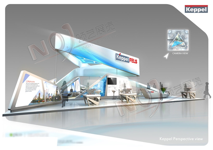 巧妙的運(yùn)用藍(lán)色、白色作搭配,著重突出品牌和產(chǎn)品的展示,使整個(gè)展位時(shí)尚新穎。