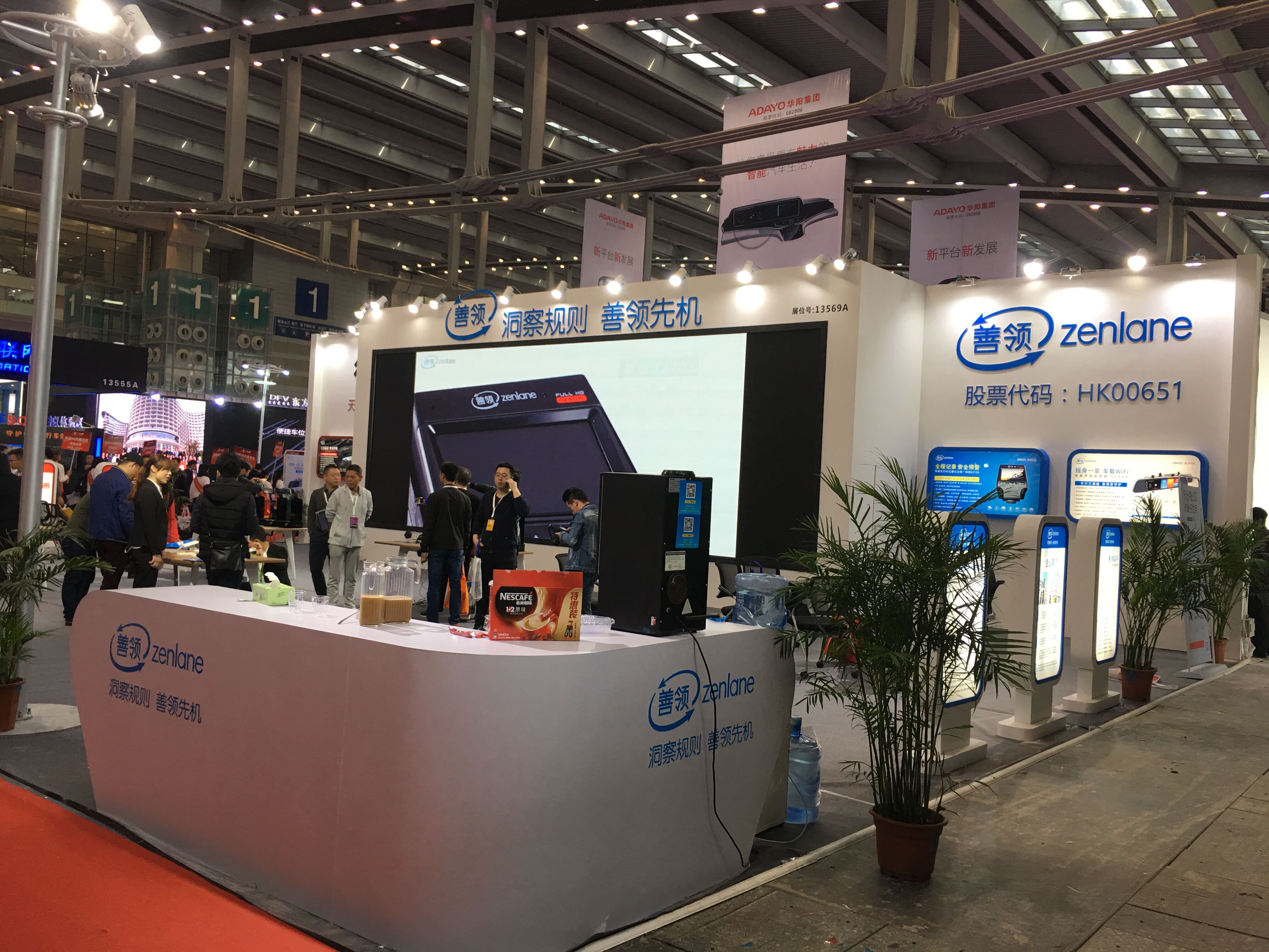 巧妙的運(yùn)用白色搭配藍(lán)色,著重突出品牌和產(chǎn)品的展示,使整個(gè)展位高檔大氣