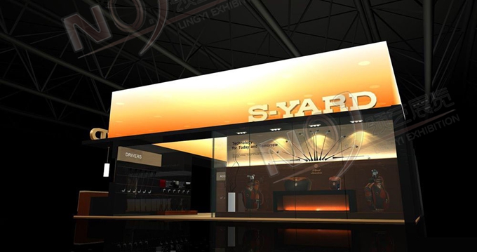 契合的S-YARD品牌形象和產(chǎn)品特性,采用矩形結(jié)構(gòu),再搭配燈具燈光的效果,襯托出展位高端、時尚的氛圍,突出一種現(xiàn)代、歐美的時尚品味。