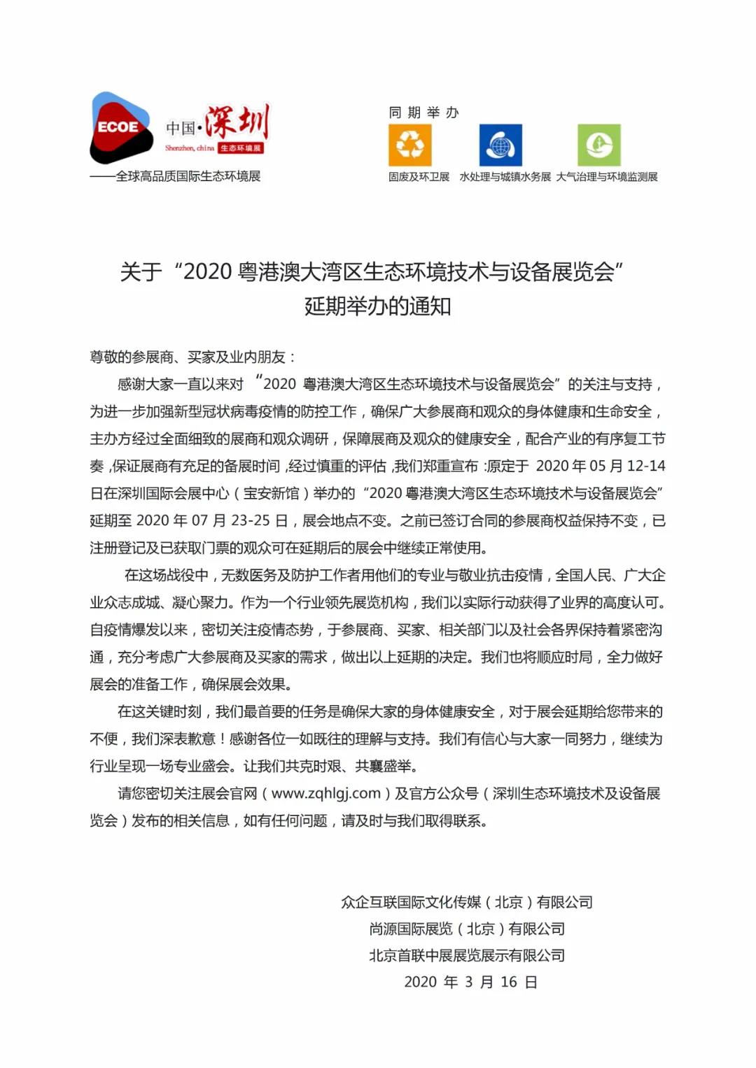根據(jù)深圳展臺(tái)設(shè)計(jì)搭建公司領(lǐng)藝展覽了解到,原定于 2020年05月12-14日在深圳國際會(huì)展中心(寶安新館)舉辦的“2020粵港澳大灣區(qū)生態(tài)環(huán)境技術(shù)與設(shè)備展覽會(huì)”延期至2020年07月23-25日,展會(huì)地點(diǎn)不變。如需深圳展臺(tái)設(shè)計(jì)請(qǐng)聯(lián)系領(lǐng)藝展覽,希望我們能在深圳展臺(tái)搭建上為您添磚加瓦,祝各位朋友收獲多多,滿載而歸!