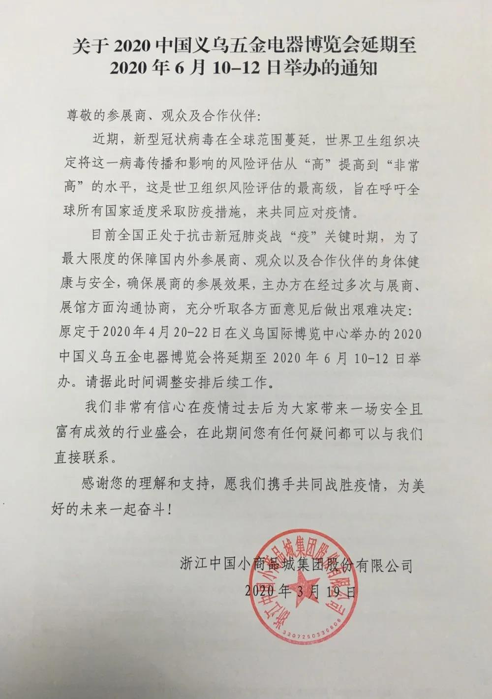 根據(jù)五金展會設(shè)計搭建公司領(lǐng)藝展覽了解到,原定于2020年4月20-22日在義烏國際博覽中心舉辦的2020中國義烏五金電器博覽會將延期至2020年6月10-12日舉辦。如需五金展設(shè)計請聯(lián)系領(lǐng)藝展覽,希望我們能在五金展會搭建上為您添磚加瓦,祝各位朋友收獲多多,滿載而歸!