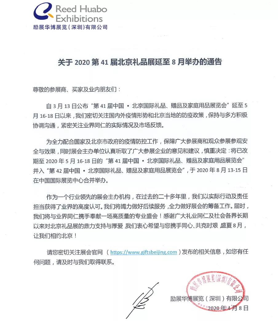 根據(jù)禮品展設(shè)計(jì)搭建公司領(lǐng)藝展覽了解到,為全力配合國家及北京市政府的疫情防控工作,保障廣大參展商和觀眾參展參觀安全與效果,同時(shí)展會(huì)主辦單位認(rèn)真聽取了廣大參展企業(yè)的意見和建議,慎重決定:將已改期至2020年5月16-18日的“第41屆中國?北京國際禮品、贈(zèng)品及家庭用品展覽會(huì)”并入“第42屆中國?北京國際禮品、贈(zèng)品及家庭用品展覽會(huì)”,于2020年8月13-15日在北京·中國國際展覽中心(靜安莊館)合并舉辦。如需禮品展設(shè)計(jì)請(qǐng)聯(lián)系領(lǐng)藝展覽,希望我們能在禮品展搭建上為您添磚加瓦,祝各位朋友收獲多多,滿載而歸!