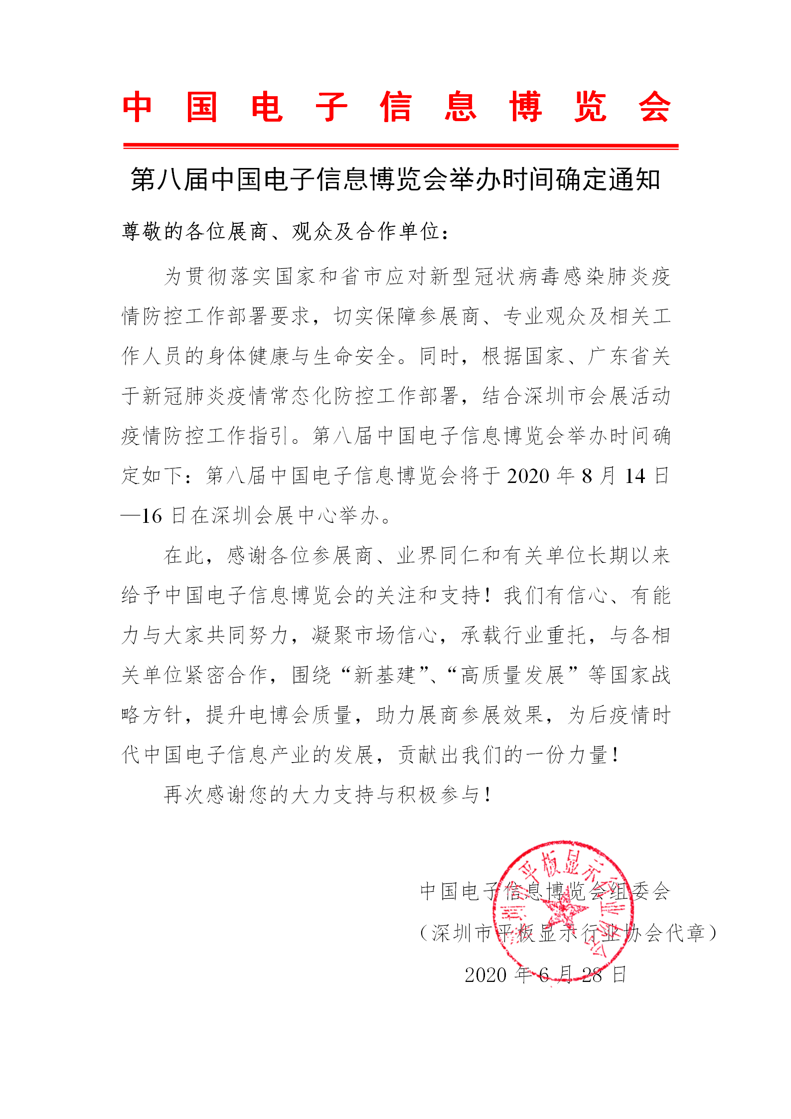 深圳電子展設(shè)計(jì)搭建公司領(lǐng)藝展覽了解到,根據(jù)國(guó)家和廣東省應(yīng)對(duì)新冠肺炎疫情常態(tài)化防控工作部署,結(jié)合深圳市會(huì)展活動(dòng)疫情防控工作指引要求,在會(huì)商有關(guān)部門(mén)和部分企業(yè)的基礎(chǔ),上,決定“2020中國(guó)(深圳)國(guó)際電子展暨2020年春季(第95屆)中國(guó)電子展”于2020年8月14日一16日在深圳會(huì)展中心召開(kāi)。在此,感謝各位參展商、業(yè)界同仁和有關(guān)單位長(zhǎng)期以來(lái)對(duì)中國(guó)電子展的關(guān)注和支持!我們有信心、有能力在做好疫情防控的基礎(chǔ)上,做好行業(yè)復(fù)工復(fù)產(chǎn)工作。圍繞“新基建”“高質(zhì)量發(fā)展”等國(guó)家戰(zhàn)略方針,提升中國(guó)電子展的質(zhì)量和展商參展效果,為后疫情時(shí)代中國(guó)電子信息產(chǎn)業(yè)的發(fā)展,貢獻(xiàn)出我們的一份力量!如需電子展設(shè)計(jì)請(qǐng)聯(lián)系領(lǐng)藝展覽,希望我們能在電子展搭建上為您添磚加瓦,祝各位朋友收獲多多,滿載而歸!