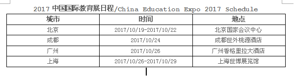 素有“留學風向標”之稱的中國國際教育展,將于2017年10月21日至29日北京和上海等地舉辦。