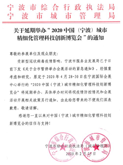 根據(jù)展臺設(shè)計搭建公司領(lǐng)藝展覽了解到,2020中國(寧波)城市精細(xì)化管理科技創(chuàng)新博覽會將延期舉辦。如需展臺設(shè)計請聯(lián)系領(lǐng)藝展覽,希望我們能在展位搭建上為您添磚加瓦,祝各位朋友收獲多多,滿載而歸!