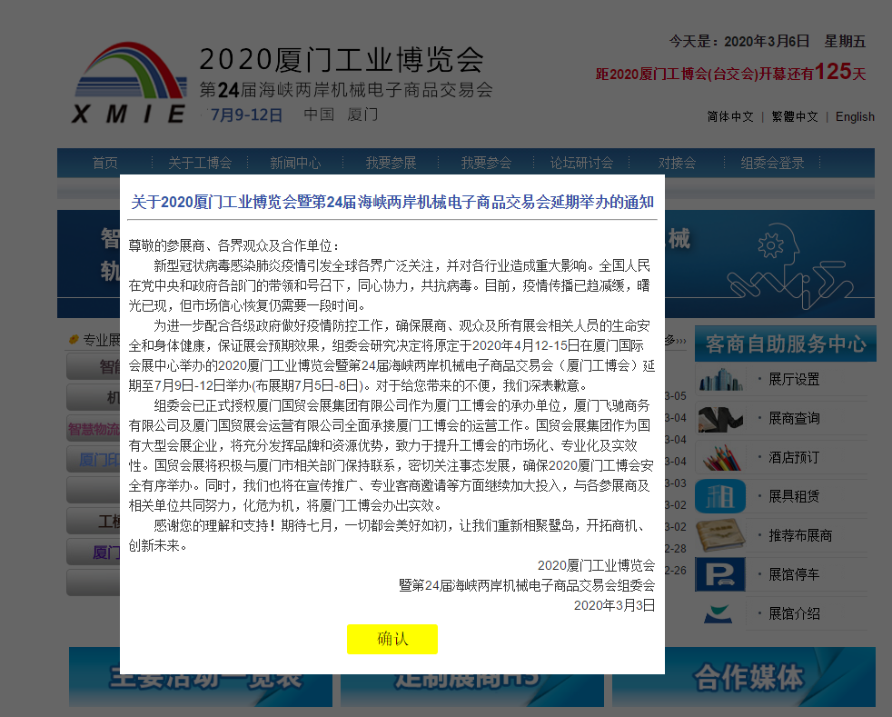 根據(jù)工博會設計搭建公司領藝展覽了解到,目前疫情傳播已趨減緩,曙光已現(xiàn),但市場信心恢復仍需要一段時間。為進一步配合各級政府做好疫情防控工作,確保展商、觀眾及所有展會相關人員的生命安全和身體健康,保證展會預期效果,組委會研究決定將原定于2020年4月12-15日在廈門國際會展中心舉辦的2020廈門工業(yè)博覽會暨第24屆海峽兩岸機械電子商品交易會(廈門工博會)延期至7月9日-12日舉辦(布展期7月5日-8日)。如需工博會展臺設計請聯(lián)系領藝展覽,希望我們能在工博會展臺搭建上為您添磚加瓦,祝各位朋友收獲多多,滿載而歸!