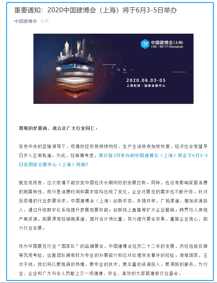 中國(guó)(晉江)國(guó)際家裝建材博覽會(huì)延期通知