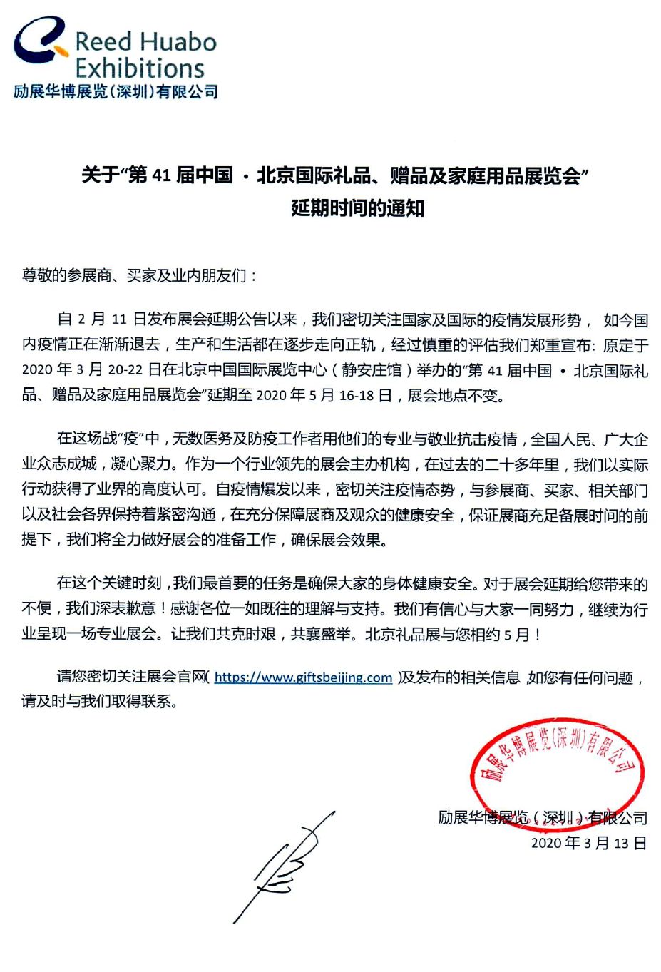 根據(jù)禮品展設(shè)計(jì)搭建公司領(lǐng)藝展覽了解到,原定于2020年3月20-22日在北京中國(guó)國(guó)際展覽中心(靜安莊館)舉辦的“第41屆中國(guó)?北京國(guó)際禮品、贈(zèng)品及家庭用品展覽會(huì)” 延期至2020年5月16-18日,展會(huì)地點(diǎn)不變。如需禮品展設(shè)計(jì)請(qǐng)聯(lián)系領(lǐng)藝展覽,希望我們能在禮品展搭建上為您添磚加瓦,祝各位朋友收獲多多,滿(mǎn)載而歸!